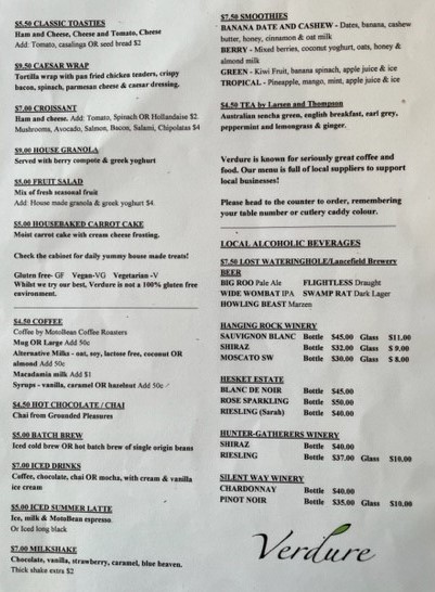 Customer satisfaction echoes through the reviews from the many happy patrons. Caroline McGettigan praises the “amazing atmosphere” and “spot on coffee”, emphasizing the welcoming nature of the staff. Joe Dunbar shares that it’s his go-to spot for a quick coffee catch-up, and Jeremy Salt delights in the flavor of his double espresso, noting its “clean and bright” flavor profile. These testimonials illustrate the genuine connection Verdure Bistro fosters with its community.